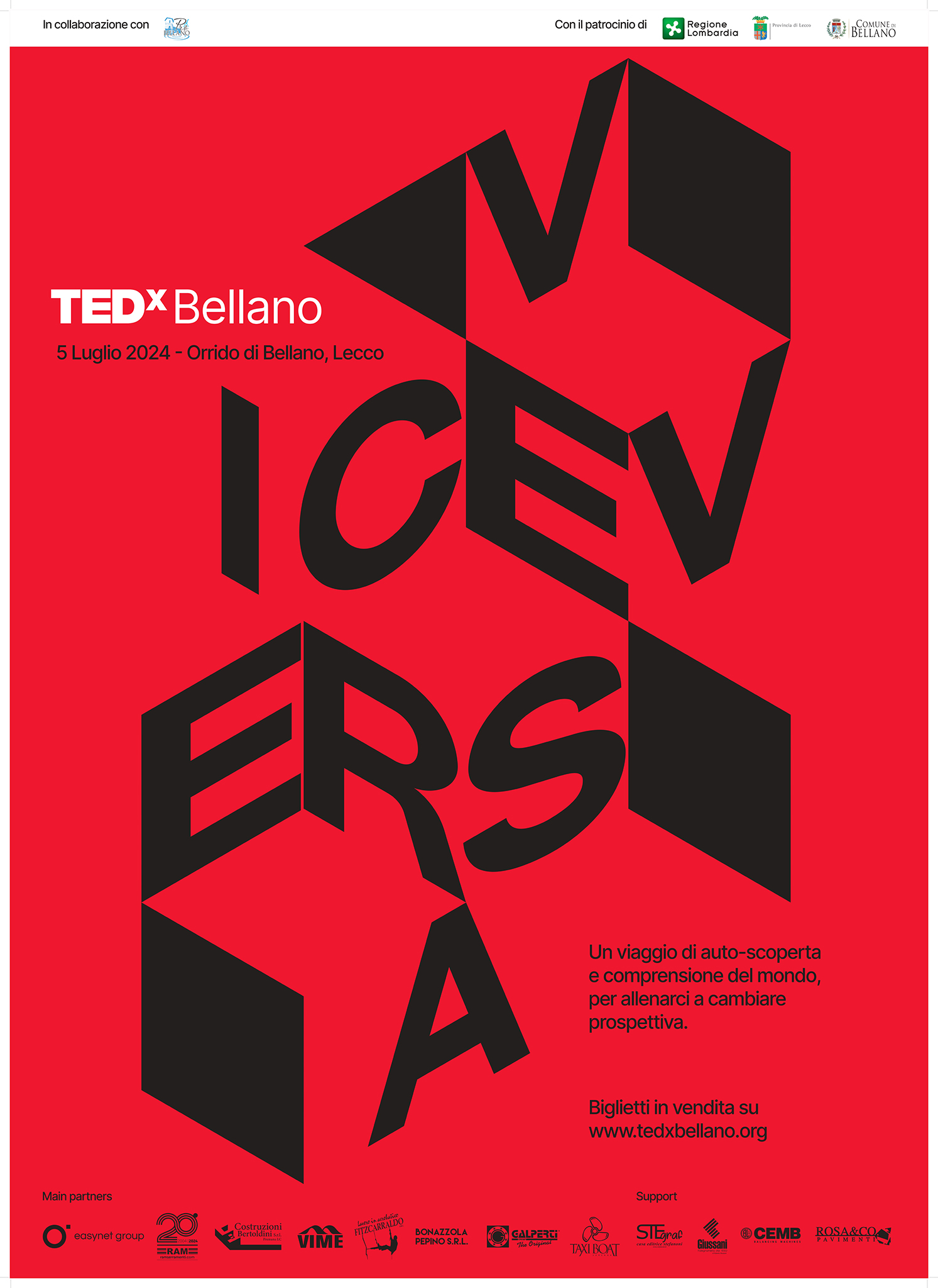 Dopo il successo della prima edizione 2023, “VICEVERSA” è il titolo della seconda edizione TEDxBellano che si terrà il 5 luglio 2024 alle ore 18 all’Orrido di Bellano.